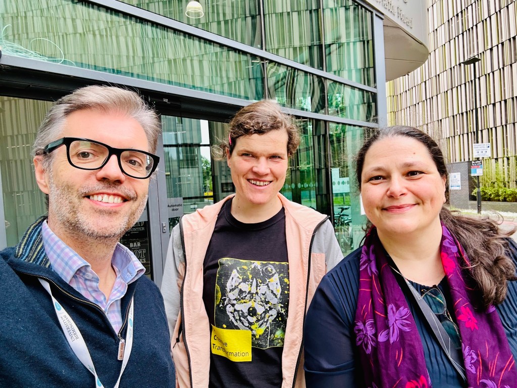 We pack up and Roxana takes Matthew and I to have a drink. It is great to debrief with the panellists and hear more about their work. I am quite tired now. I have been up since 9:30pm yesterday. Roxana buys me lunch, which is very kind of her. We work on the paper that we are writing, which is about madness and creativity and it builds a transformative philosophy. I am very excited about this piece of work.
