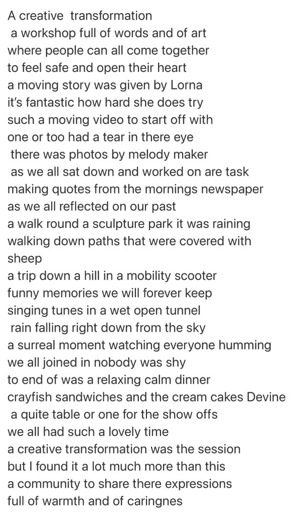 Participant Ryan’s poem about the workshop at Yorkshire Sculpture Park: