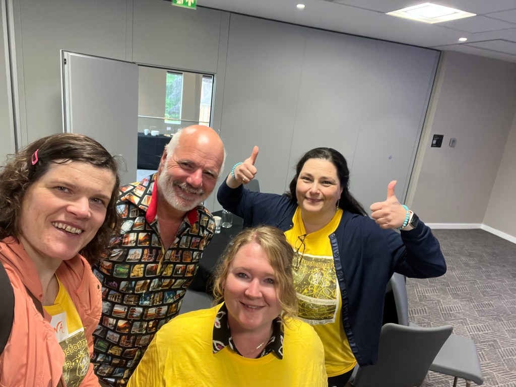 Russell explained some of the science behind creating sound in different areas of space. He played a recording of different sounds and voices in the room. The recording was played on a laptop computer, so – he said – it wasn’t as effective as when it’s played in headphones, where it can be like a surround sound. The recording only lasted a couple of minutes, but it had a very strong effect on participants in the room. Each table discussed our experiences of the recording and what we felt it could do to educate healthcare professionals and medical students. We experimented with ideas and applications around the brain, psychosis and AI Technology, considering ethical challenges to this app, as well as practical ones. The app clearly has huge potential to show people what it is like to have auditory hallucinations. The team have interesting and useful technological resources to support what they are creating. It will be interesting to see how the app develops in an inclusive and ethical way, in the context of staff training or (later) in treatment settings.